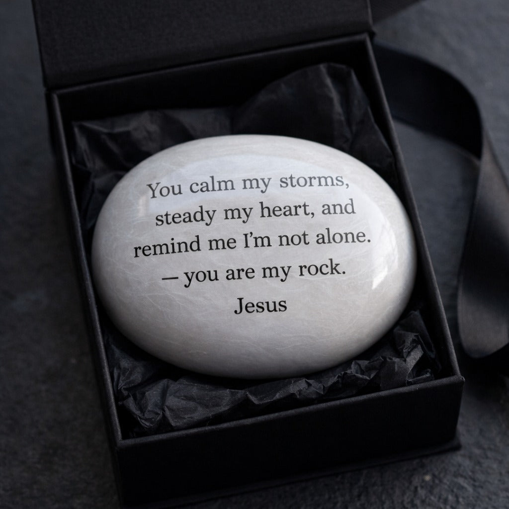 This smooth, engraved stone carries a powerful message of comfort and strength — a quiet reminder that you are never alone. Designed to bring peace during difficult moments, prayer, or reflection, it’s a meaningful keepsake for anyone who finds strength in their faith.